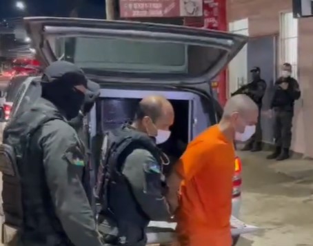 João Paulo é retirado de viatura para participar de reconstituição do crime - Foto: Reprodução de vídeo