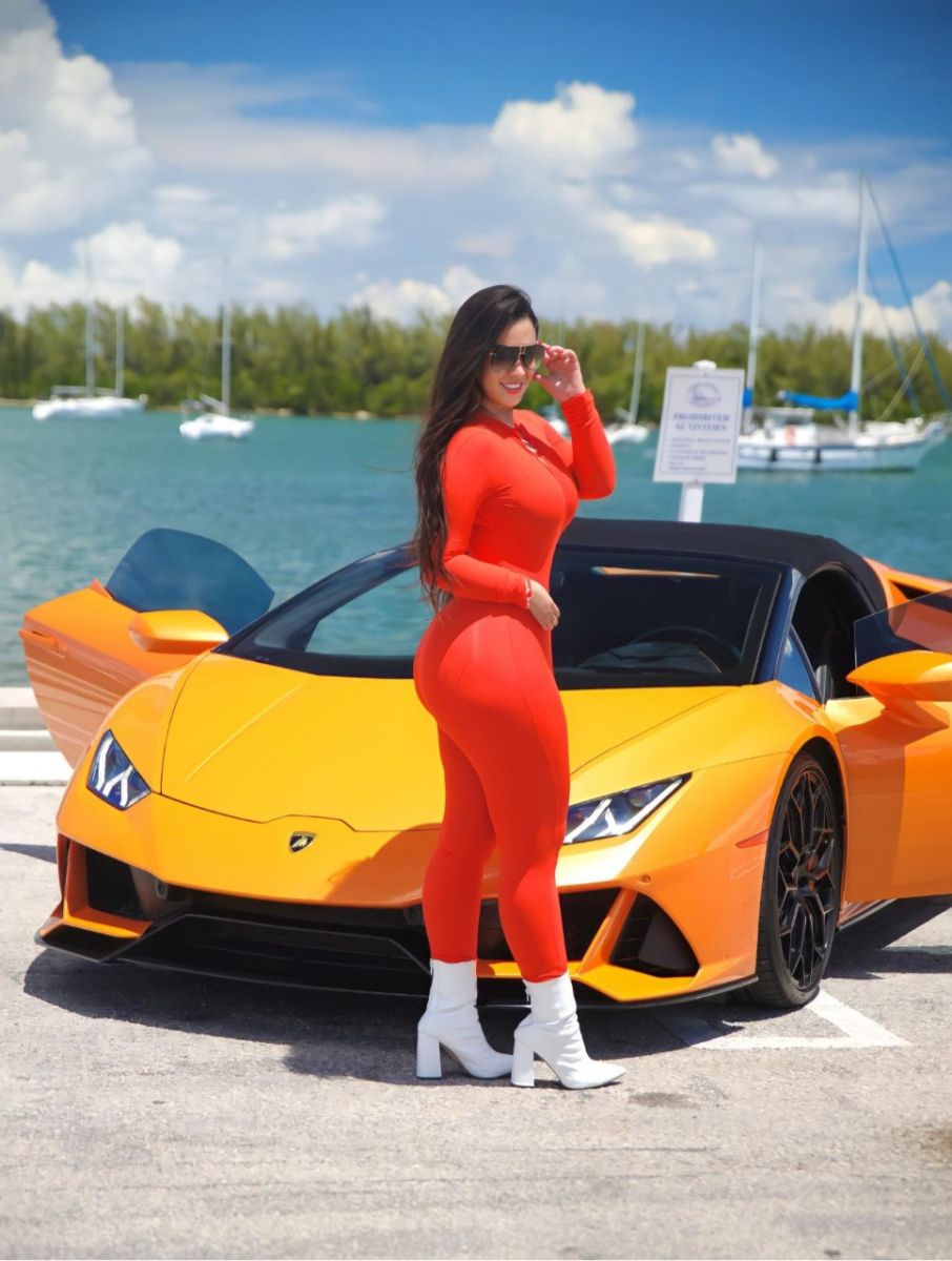 Nas imagens, Treici joga as notas para pessoas que estão em uma fila. A mulher é filmada enquanto está como passageira em uma Lamborghini.
