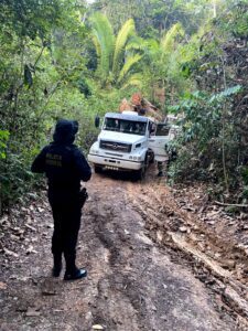 Durante as incursões foram encontrados diversos pontos de desmate com árvores derrubadas, um acampamento improvisado, quatro motores utilizados para prática de garimpo, três caminhões carregados com madeiras, duas motocicletas, mil litros de óleo diesel e aproximadamente 120 metros cúbicos de madeira em tora, os quais foram inutilizados.